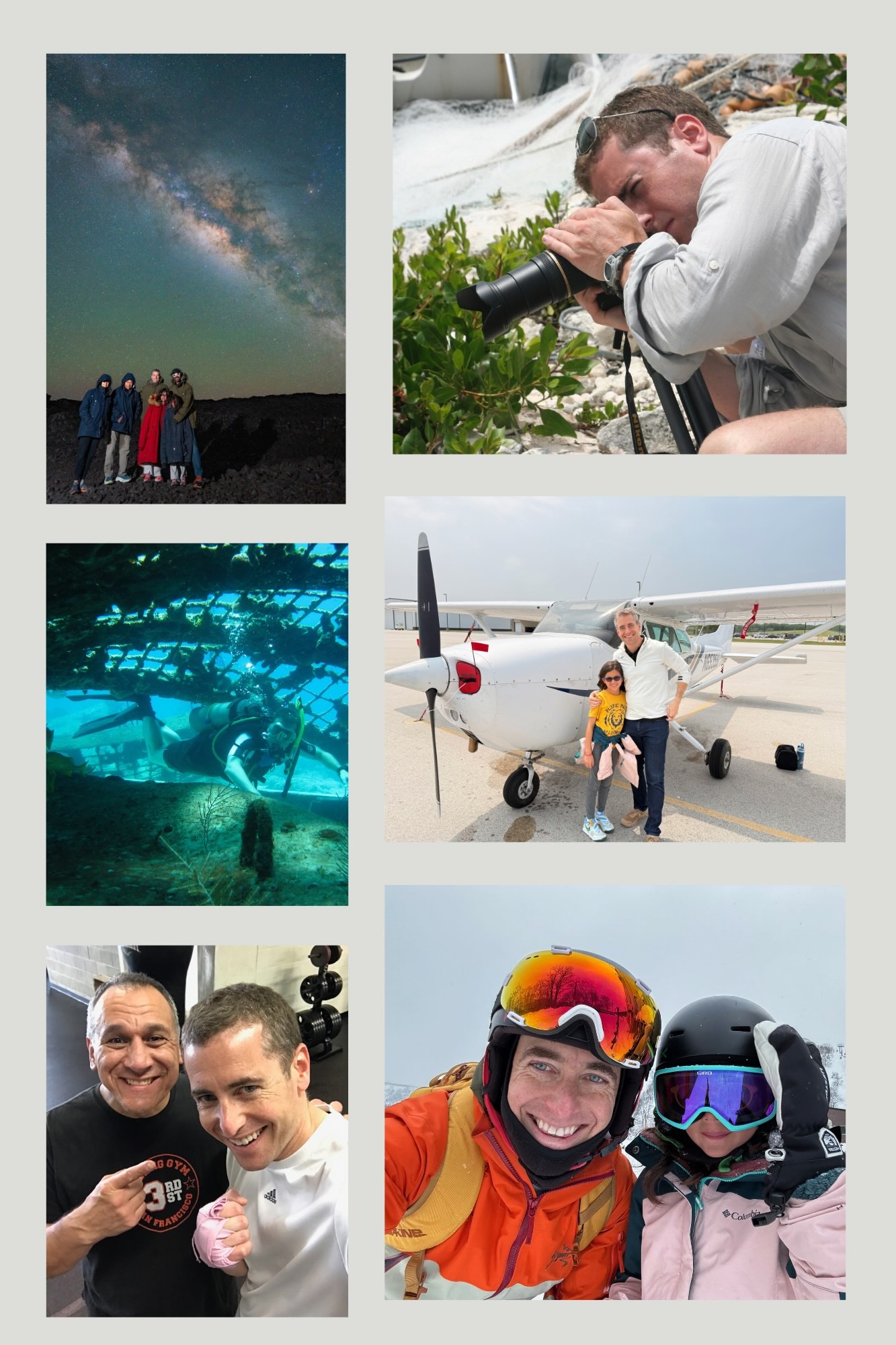 I'm constantly curious and committed to learning. I started flying at 14, became an avid photographer at 16, and won a state tennis championship at 18. My latest pursuits include perfecting espresso shots, handling electrical work on my house, and increasing my VO2 max. These pursuits reflect the sustained curiosity and willingness to learn that characterize effective leaders.
